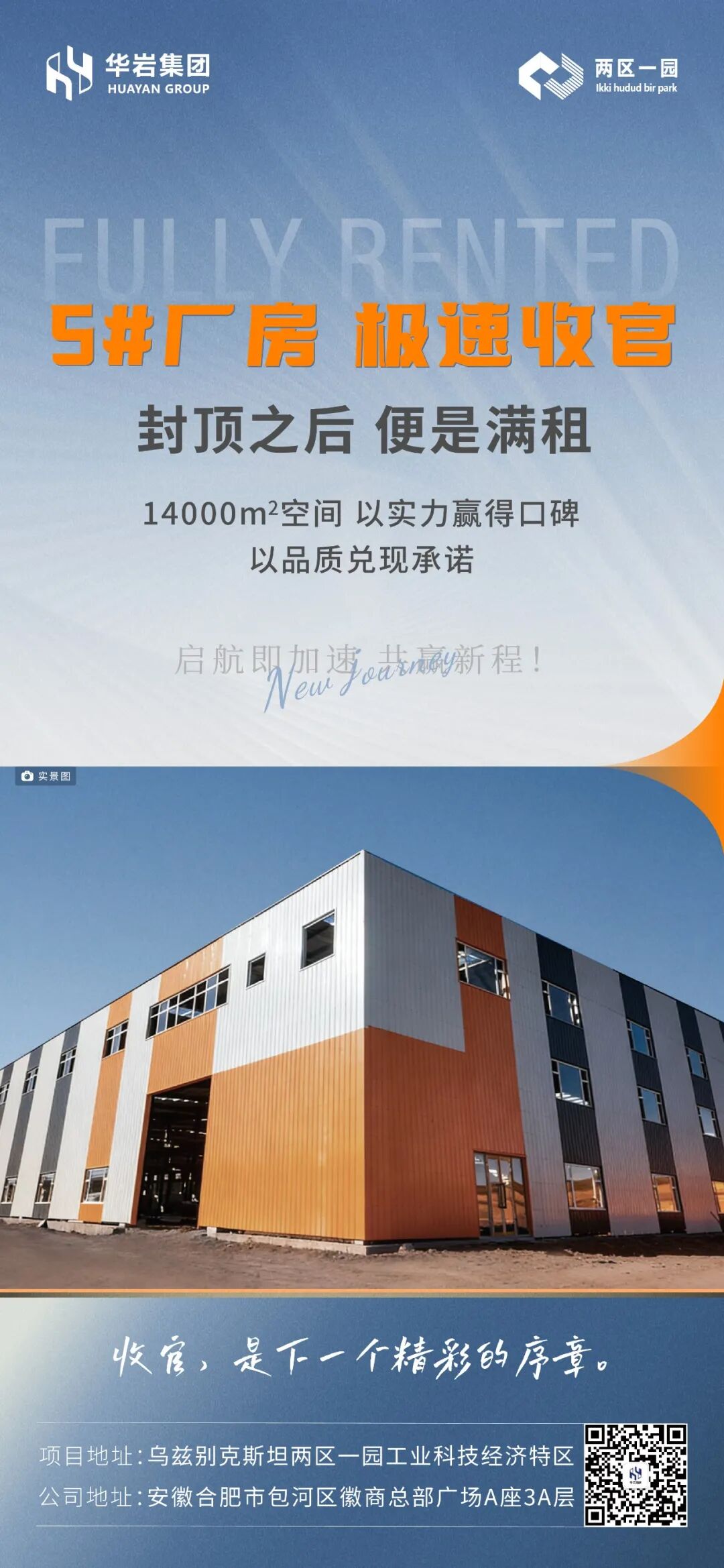 5号厂房的全面收官,不是终点,而是新起点。随着首批企业陆续入驻投产,一个涵盖制造、加工、物流的产业链生态正在园区加速成型。与此同时,园区后续产业空间也已启动规划建设,更多优质载体正在路上。中亚出海浪潮方兴未艾,华岩产业园正成为越来越多中国企业布局海外的“桥头堡”。